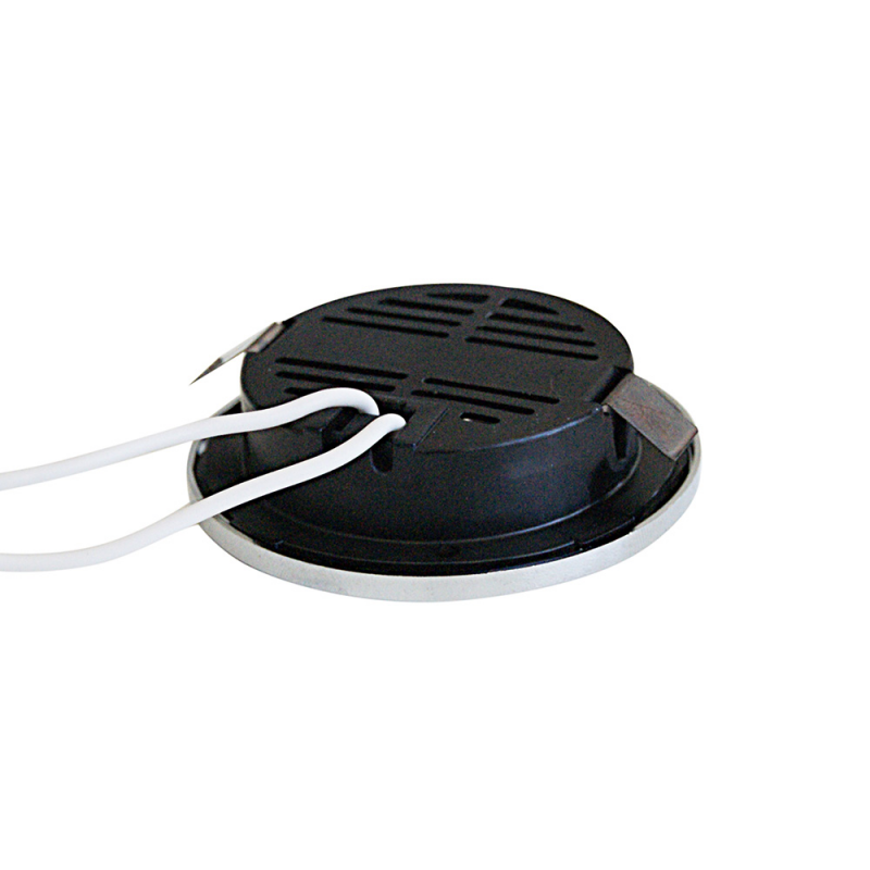 Faretto alogeno in materiale termoplastico ad incasso, Ø foro mm. 54.Vetro di protezionesabbiato, completo di lampadina alogena. 3 fori di fissaggio. Ricambio lampadina a LED 4090322.