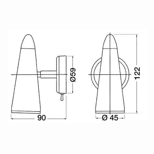 Faretto con interruttore e corpo in ottone pressofuso, lente in vetro sodico, temperato e satinato. Lampadina non inclusa.