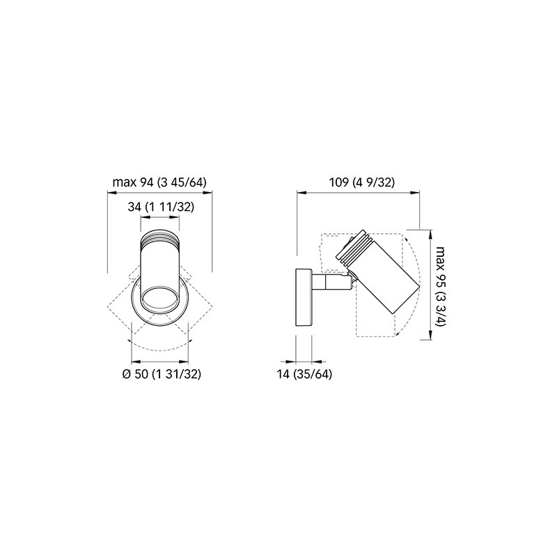 Faretto orientabile da interno fabbricato in alluminio con finitura cromata, dotato di interruttore. Luce bianca calda (140 lumen). Fissaggio a parete con viti. Sensibile alla polarità.