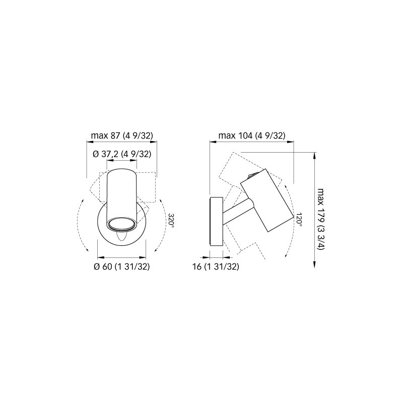 Faretto orientabile da interno fabbricato in materiale composito di colore bianco, dotato di interruttore. Luce bianca calda (140 lumen). Fissaggio a parete con viti. Sensibile alla polarità.