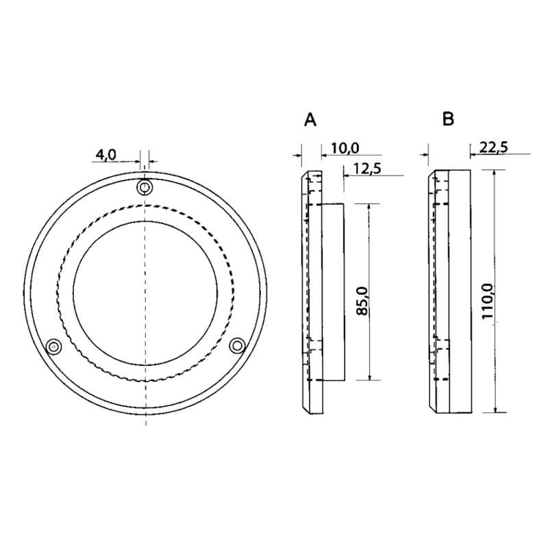 Faretto subacqueo a LED in policarbonato, con corpo monoblocco resinato, stagno IP68. Luce bianca fredda (8000°K) o blù da 800 lux. Ideale per plancette, roll-bar, tendalini, pozzetti, vani motore, cucine, bagni, ecc. Montaggio ad incasso o a parete. Usando il distanziale si evita di effettuare il foro per il passaggio del filo.