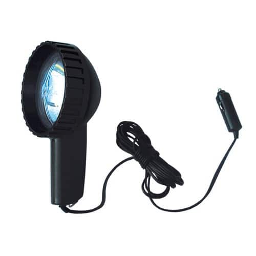 Faro alogeno portatile, realizzato in materiale termoplastico antiurto. Completo di cavo e spina per accendisigari. Interruttore ON-OFF.