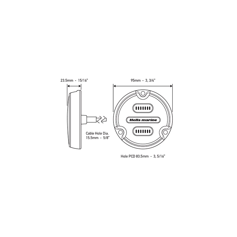 Fari subacquei a led compatti e potenti con corpo in termopolimero marino. Lenti antiurto ad alta resistenza e resistente ai raggi UV in Grilamid HD offre trasparenza e durata eccezionali con ottiche a luce bianca 5000 K°, 1800 lumen con 90° di ampiezza. Elettronica multivolt 9-32V con protezione per surriscaldamento, inversione di polarità e picchi di tensione. Grado di protezione IP68/IP69: Adatto per immersione durante il funzionamento e pulizia a getto d’acqua ad alta pressione. Foro 15,5 mm per il cavo elettrico da 2,5 metri in dotazione.