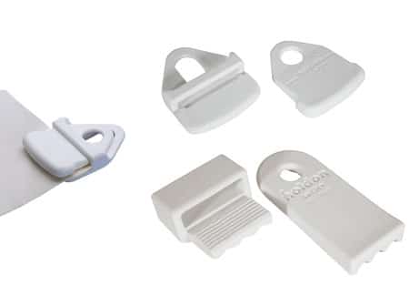 Sistema fermateloni Hold-on Grip in Nylon. Si compone di 2 parti di cui una lavora da cuneo: più tira il tessuto, più tiene.