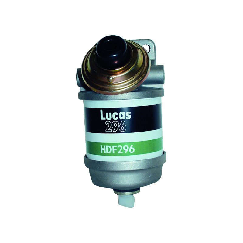 Filtro decantatore gasolio completo di pompa a mano per riempire il circuito, in lega leggera pressofusa, vite di spurgo, 2 ingressi, 2 uscite. Portata 50 lt./h. Completo di 2 tappi, filettature F da mm. 14×1,5. Dim. mm. 170 x 93 x 93.