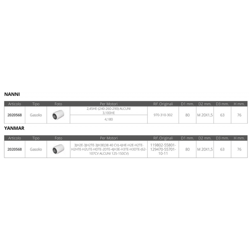 | Tipo | FILTRO GASOLIO NANNI YANMAR |