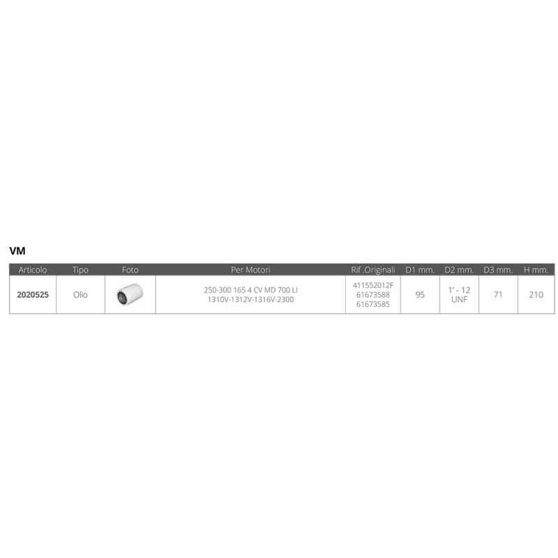 | Tipo | FILTRO OLIO VM 4115.52012F |