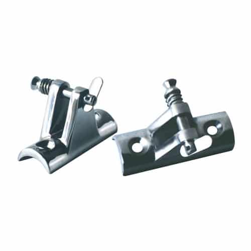 Forcella in ACCIAIO INOX AISI 316 a base concava per tubi con diametro 20-22-25 mm, con perno a molla e linguetta pieghevole.