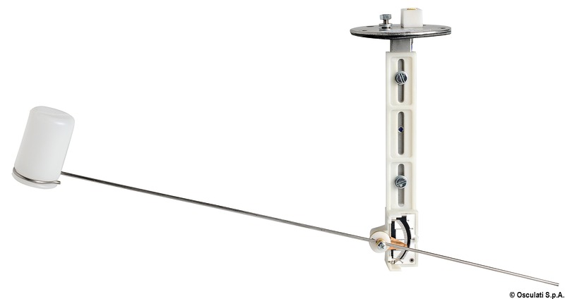 Parti metalliche in acciaio inox. Resistenza a strisciamento in ceramica con contatto in platino (garantiti 4 milioni di movimenti). Regolabile per serbatoi altezza 150-600. Sistema brevettato di ritardo dall’asta mobile per annullare l’effetto beccheggio/rollio.