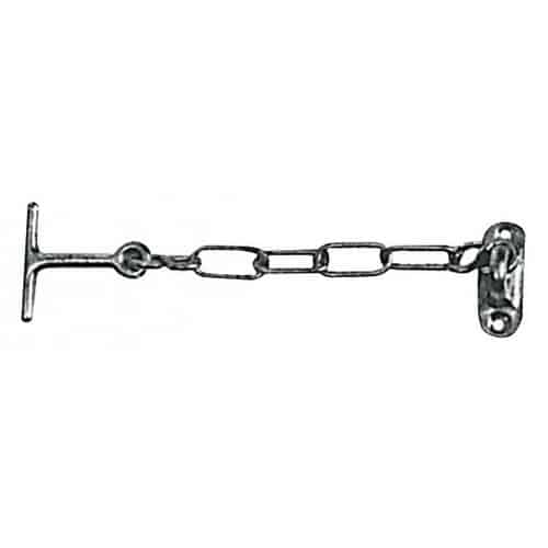 Gancio in ottone di sospensione per portelli e oblò; si ottiene l’esatta lunghezza desiderata eliminando uno o più anelli della catenella.