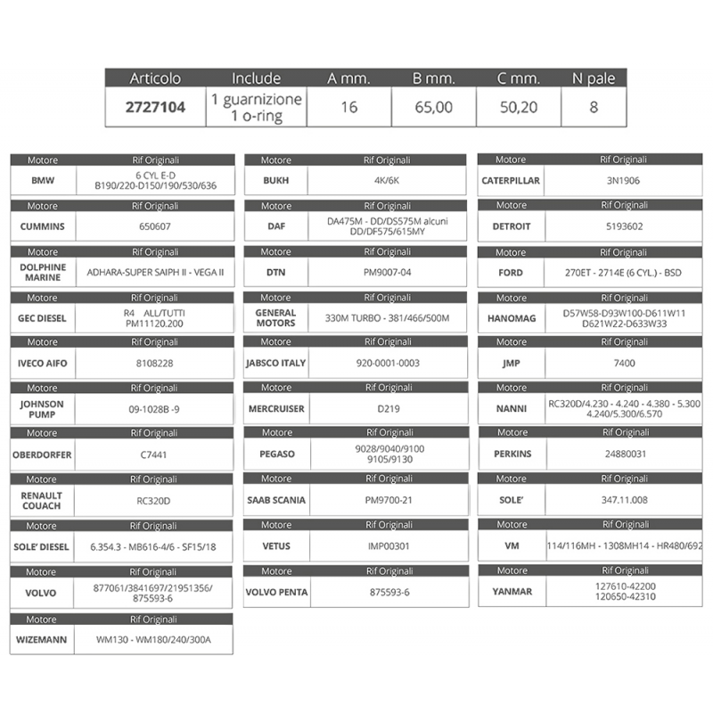 Dim. Ø int.mm. 16 Ø est.mm.65 spessore mm.50,2, nr.8 pale.