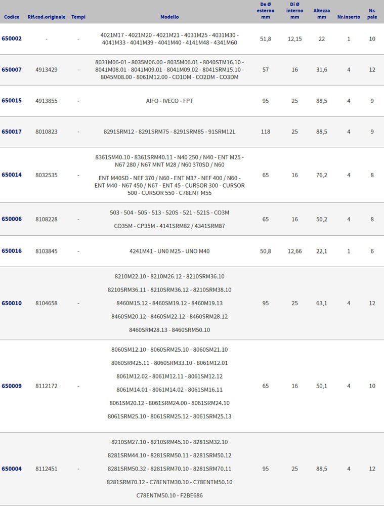 Giranti in neoprene per motori entrobordo Aifo-Iveco-Ftp.