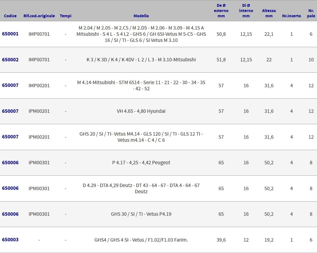 Giranti in neoprene per motori entrobordo Vetus.