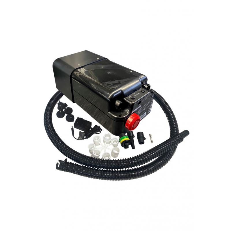 Gonfiatore-sgonfiatore ad alta portata ed alta pressione.Portata lt/min 450, pressione regolabilefino a mbar 800 (4,4 psi). Stop automatico alla pressione scelta. Adatto per gommoni tradizionali. Cavo per ricarica batteria interna a 12V che consente un’autonomia di circa 15 minuti a pieno carico. Dim. mm. 180x200x300. Peso kg. 4,8. Funziona solo a batteria.