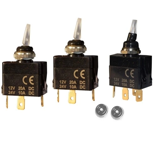 Interrutore a leva illuminato a stagno con cappuccio.