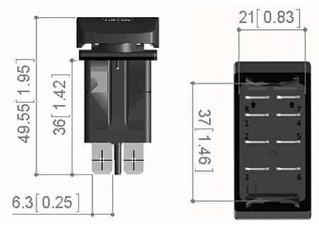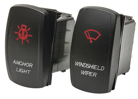Interruttori basculanti 12/24V (20/10A) impermeabili IP68 con guarnizione in Nitrile.