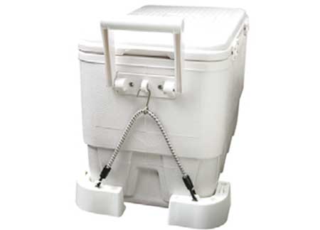 Kit bloccaggio universale per ghiacciaie portatili composto da 4 angoli + 2 cavi elastici da fissare attraverso le maniglie.