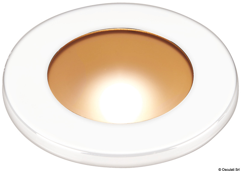 Carcassa in policarbonato completa di ghiera. Lente satinata. Un solo LED centrale. Fissaggio con viti.