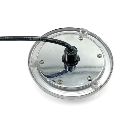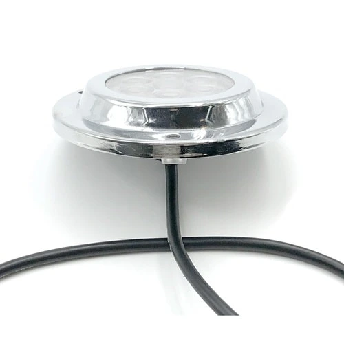 Plafoniera faretto subacquea led realizzata in Aisi 316 per montaggio allo specchio di poppa sotto la linea di galleggiamento.