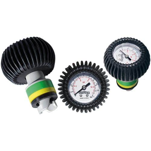 Manometro adattabile a varie valvole per controllo della pressione di gonfiaggio fino a 1 bar per battelli pneumatici, per massimo comfort e sicurezza.