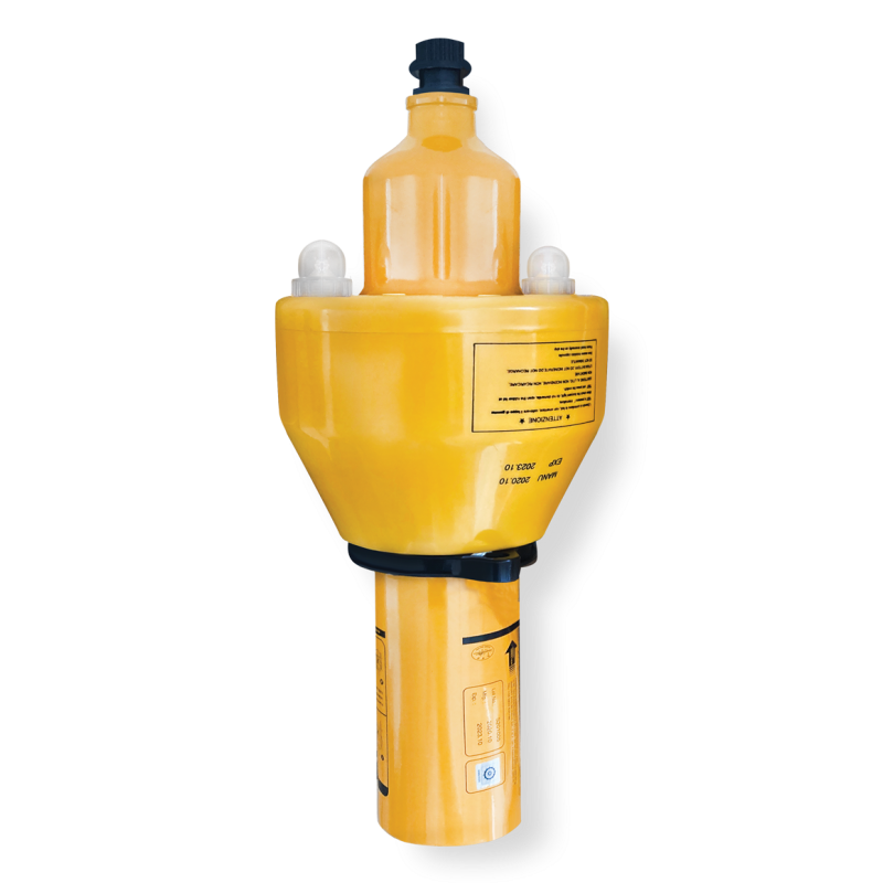 Segnale fumogeno arancione con luci ad attivazione automatica per l’uso in qualsiasi situazione di emergenza uomo in mare. Conforme Solas 74/88, Marine Equipment Directive 2002/75/EC, Res. MSC. 48 [66]- MSC 81[70]. Dimensioni Ø mm. 190x 450h. Peso Kg.4