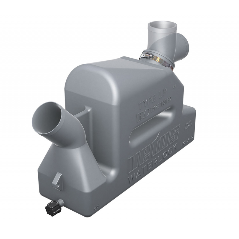 Marmitta Vetus in plastica, riduce al minimo la rumorosità prodotta dallo scarico, raccoglie Iacqua dopo che il motore é stato spento.