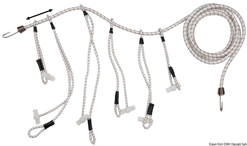 Con cavigliotti in nylon e ganci terminali in acciaio inox.