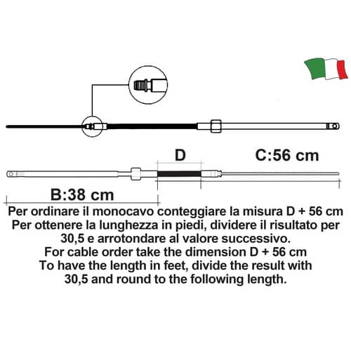 Monocavo M58 (ULTRAFLEX) o T01 (RIVIERA) adatto per timoneria T67 e SG01, si può inoltre montare su timonerie C230/C231 Morse, Compac-t Teleflex, 850 TX.