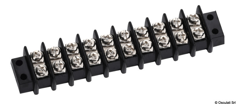 Con morsetti terminali in ottone nichelato. Separatori per evitare contatti accidentali.