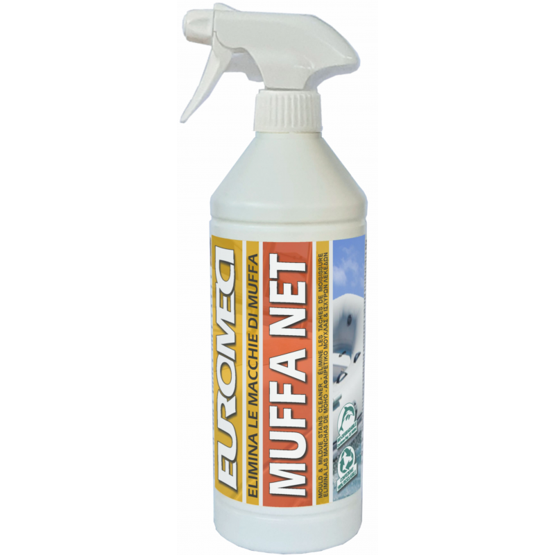 Muffa Net elimina macchie di muffa dalle cuscinerie in similpelle, dai gommoni e dalla vetroresina. Si spruzza sulle macchie e si risciacqua appena queste sono sparite.