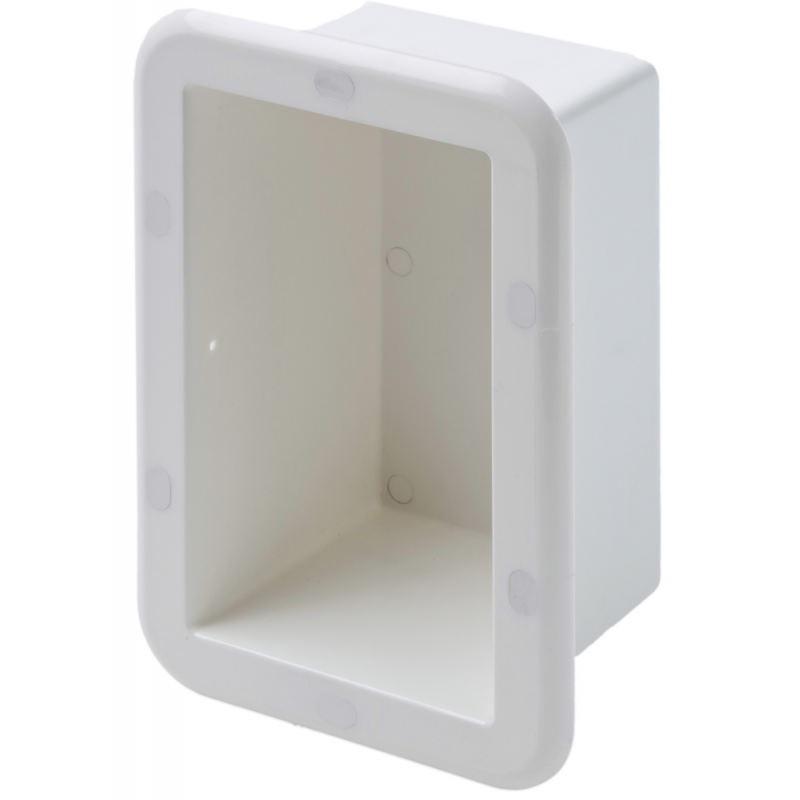 Contenitore in ASA bianca, resistente ai raggi UV, incasso a parete, porta doccia, oggetti, ecc… Dimensioni esterne mm 235×160, interne mm 110×180.