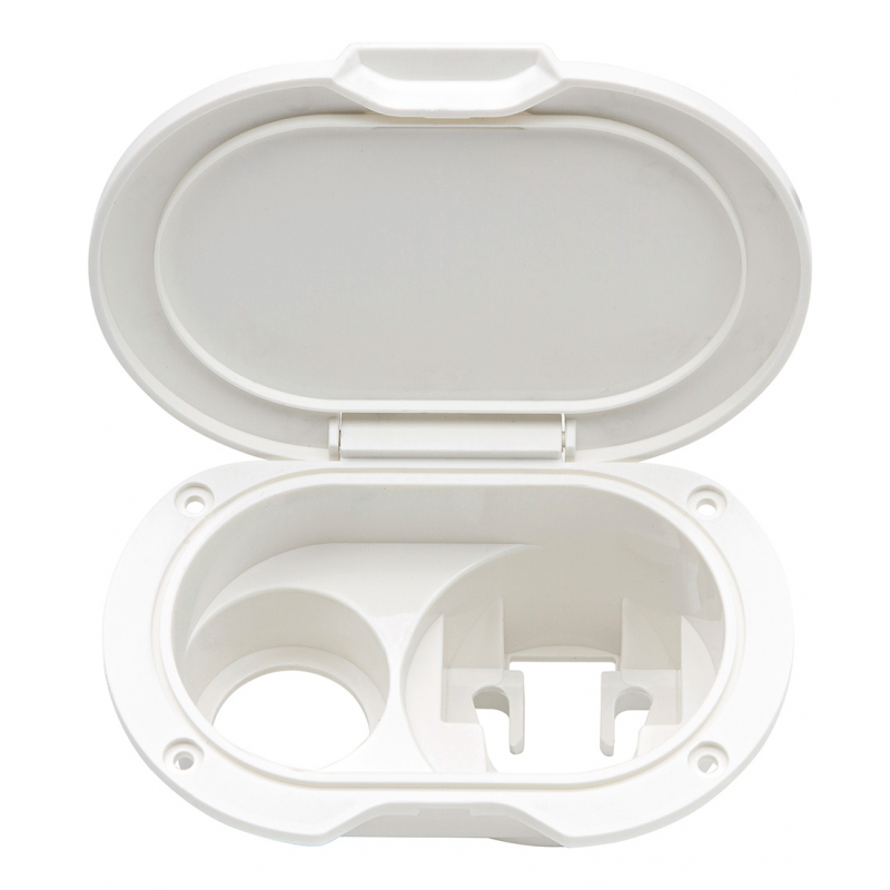 Contenitore in ASA bianco resistente ai raggi UV per doccette e rubinetti miscelatori.