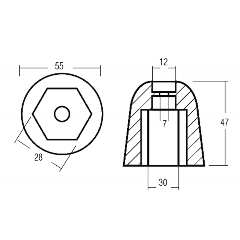 Ogiva esagonalein zinco per bow thrust Vetus (rif. or. BP195)