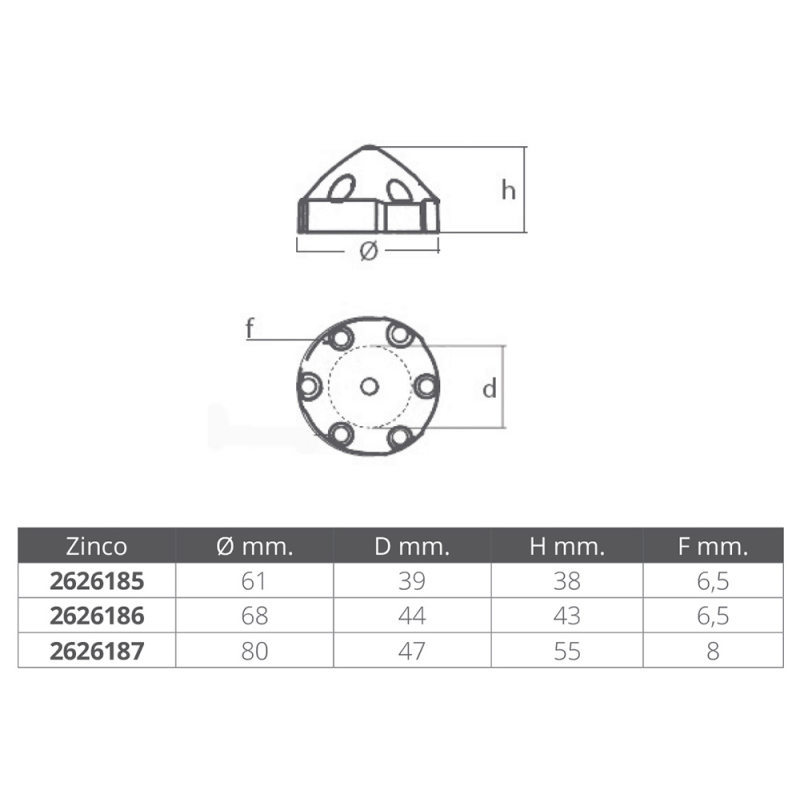 OGIVA MAX PROP Ø MM.68 6FORI, OGIVA MAX PROP Ø MM.80 6FORI, OGIVA MAX PROP Ø MM.61 6FORI