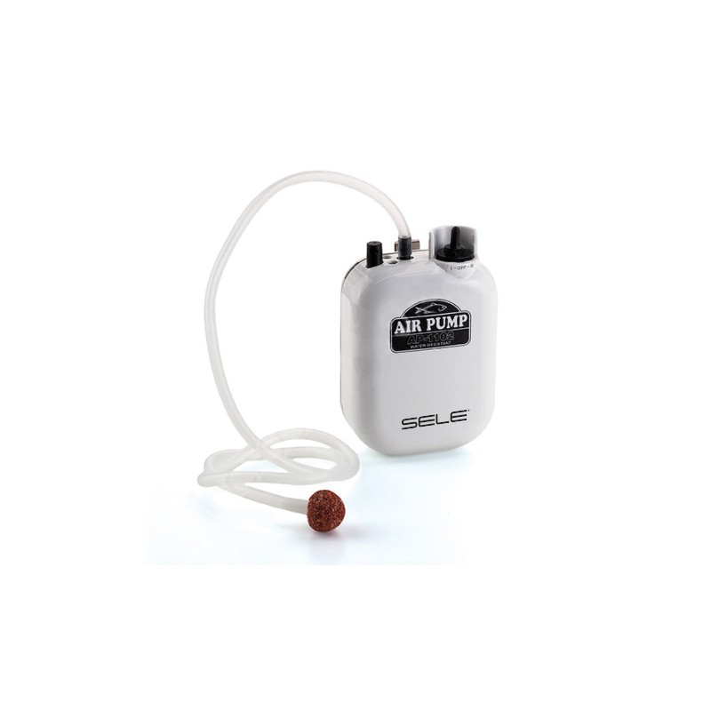 Ossigenatore Sele per secchio porta vivo a doppia velocità, alimentazione a batteria tipo “D”. Pietra e tubo incorporati. Ideale per ossigenare lacqua durante il trasporto dei pesci esca.
