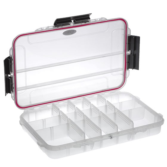 La linea di scatole MAX Grip, impermeabili e resistenti ad urti e polveri, è pensata per i pescatori più esigenti. Cerificate IP67 e dotate di una valvola automatica di pressurizzazione, queste scatole si adattano ad ogni utilizzo ed applicazioni, fornendo una protezione superiore dagli agenti atmosferici. Sono disponibili in differenti misure e configurazioni: vuote, con scomparti fissi e con scomparti mobili