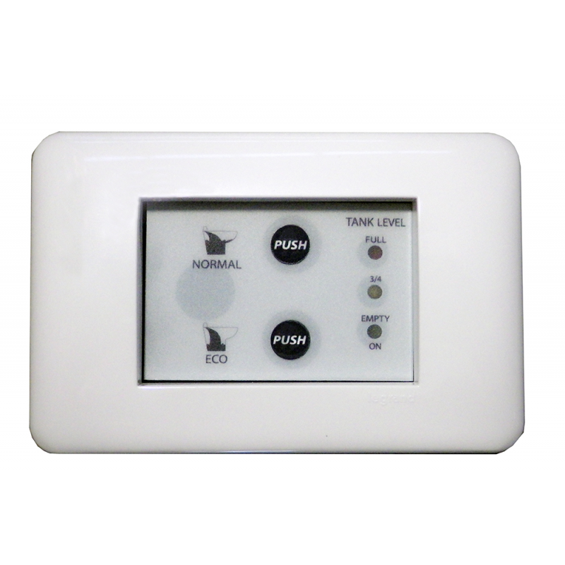 Pannello di comando con pulsanti touch screen ed indicatore a led livello serbatoio acque nere. Per wc elettrici, dimensioni mm 125 x 80. Alimentazione 12/24 V.