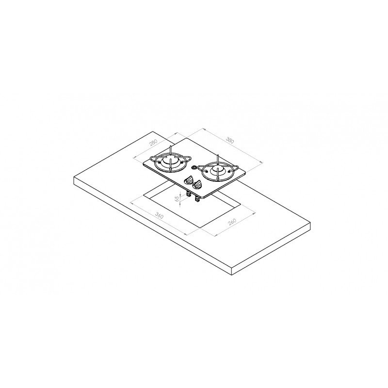 | Tipo | PIANOCOTTURA VETRO 2 FUOCHI 280X380 |