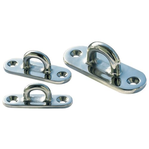 Piastrina con cavallotto in fusione su base in ACCIAIO INOX AISI 316 con due fori per il fissaggio.Accessori ferramenta inox