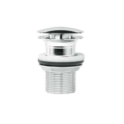 Piletta in ottone cromato con chiusura push-pull e filetto utilizzato anche per fissare il lavello sul piano di appoggio.
