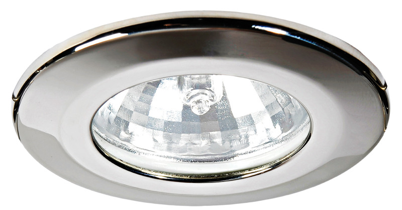 Corpo in acciaio inox. Lente in vetro. Parabola dicroica. Sistema di fissaggio con molle interne.