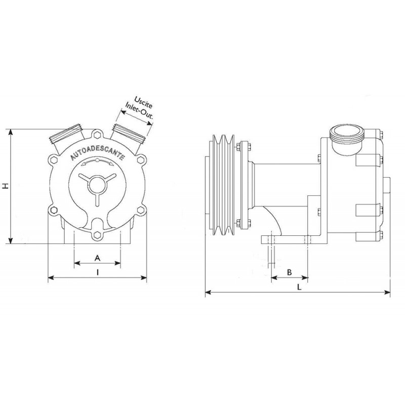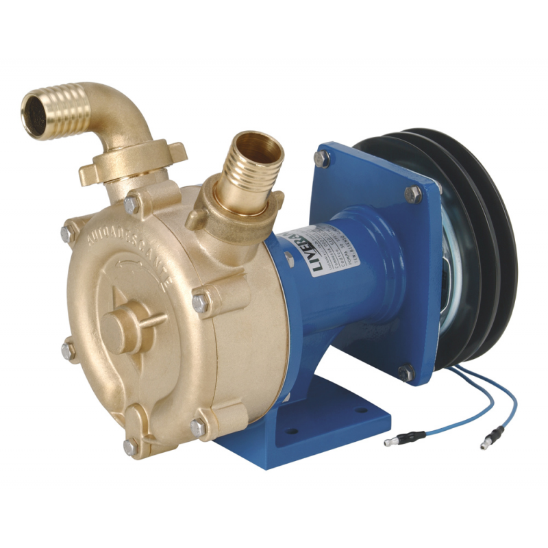 Pompa in bronzo autoadescante a puleggia con frizioneelettromagnetica girante in bronzo.