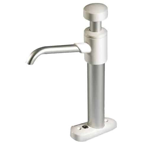 Pompa a mano whale ideale come pompa di emergenza, autoaspirante, girevole, regolabile in altezza. Fabbricata in nylon, alluminio e acciaio inox.