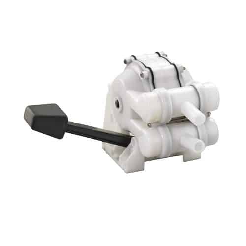 Pompa a pedale per lavello a doppio effetto con bocche orientabili e membrane in neoprene.
