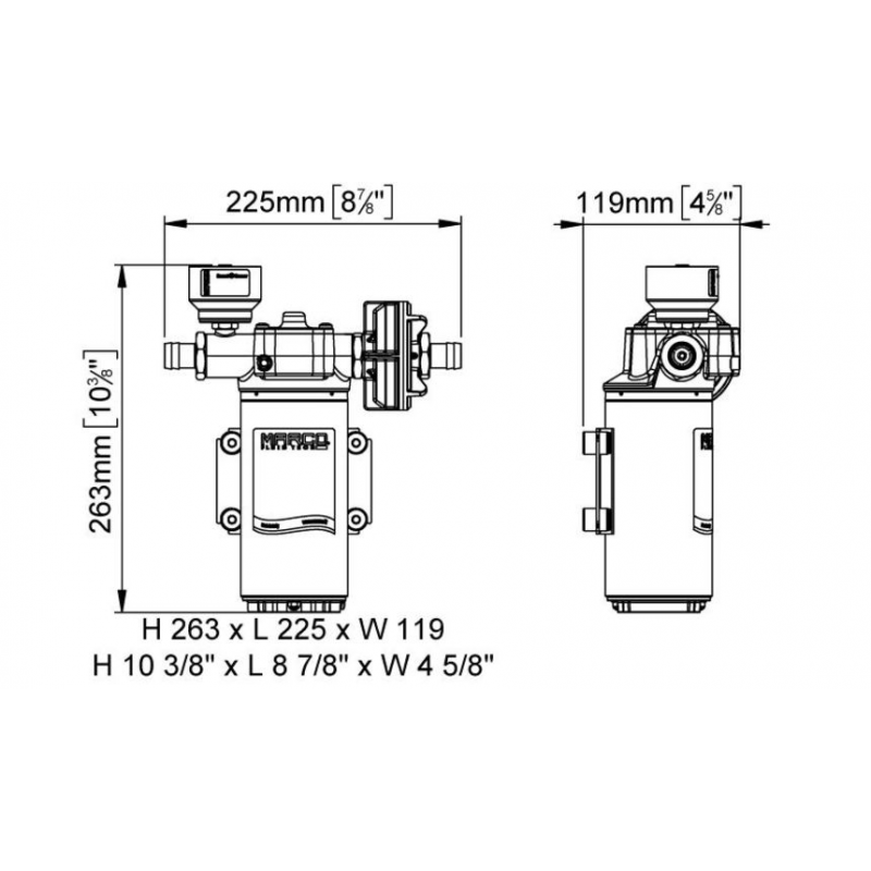 Elettropompa autoadescante ad ingranaggi in PEEK elicoidali, valvola di non ritorno e controllo elettronico. Corpo e connessioni in ottone nichelato, albero in acciaio inossidabile. Pannello di controllo incluso.Fusibile (non compreso) da 30A