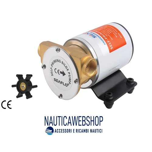 Pompa sentina SAEFLO a parete ideale come pompa di sentina per il lavaggio del ponte e svutamento vano motorecon corpo pompa in ottone, testa in bronzo e girante flessibile in gomma e rame.