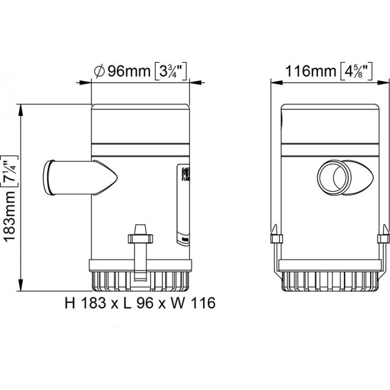 Pompa ad immersione per svuotamento sentina. Involucro in robusto ABS antiurto, resistente alla corrosione ed alla elettrolisi.