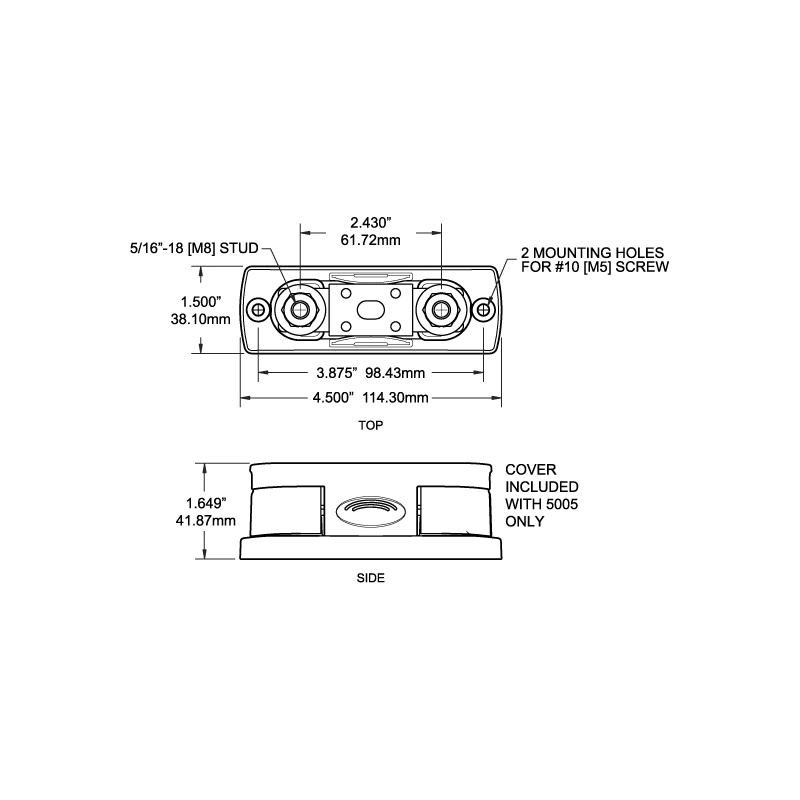Coperchio isolante conforme ABYC/USCG. Perni in acciaio inox resistenti alla corrosione. Base resistente alle alte temperature UL 94-V0. Rif. originale 5503