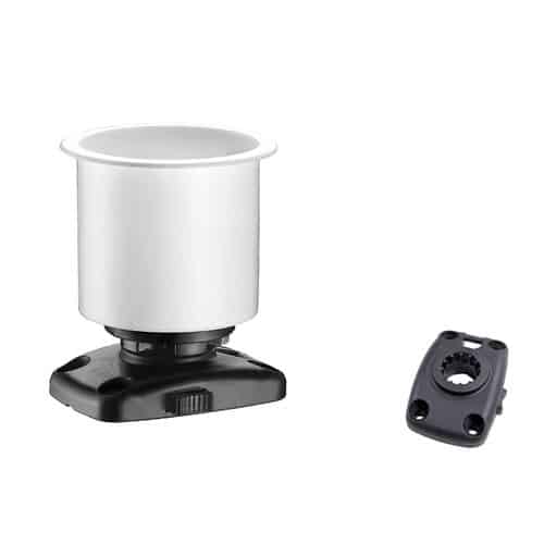 Portabicchere in ABS bianco con base a sgancio rapido fornito con viti di fissaggio.