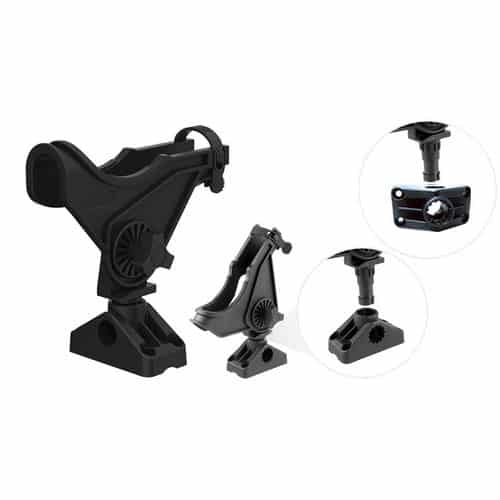 Portacanna in nylon rinforzato con fascetta blocca canna, girevole a 360° in orizzontale e 90° in verticale con sistema di innesto rapido ed estraibile alla base di fissaggio.